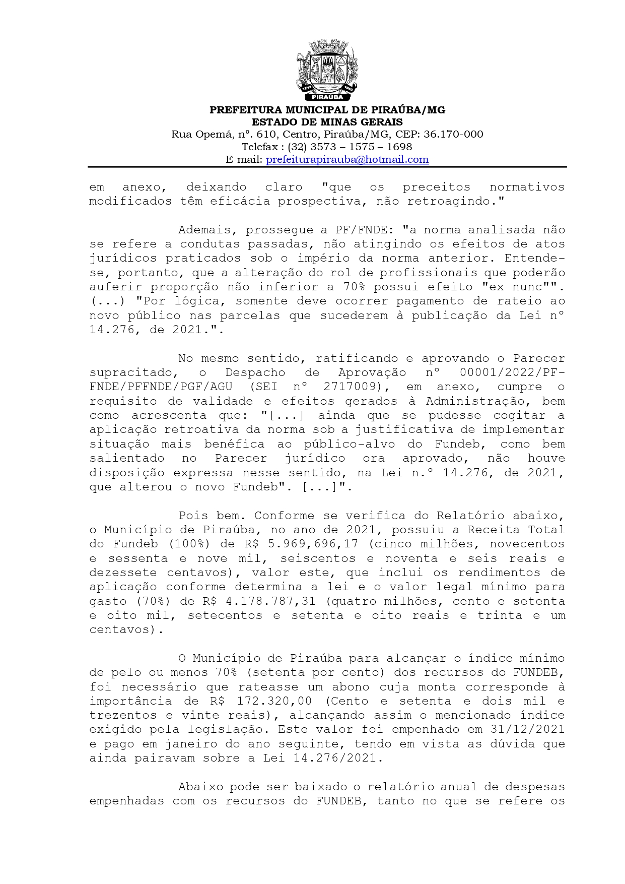 | RELATÓRIO FUNDEB - 2021 |