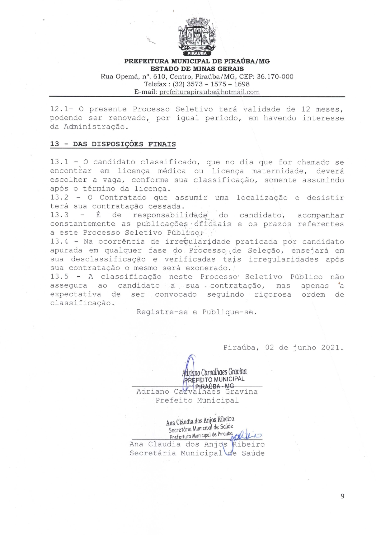 Processo Seletivo Público e composição para quadro de reserva, para eventual contratação temporária de excepcional interesse público para atuação de profissionais junto à Secretaria Municipal de Saúde, para admissão em caráter temporário e por contrato de tempo determinado, de acordo com os cargos a seguir relacionados, o qual se regerá pelas instruções no Edital.