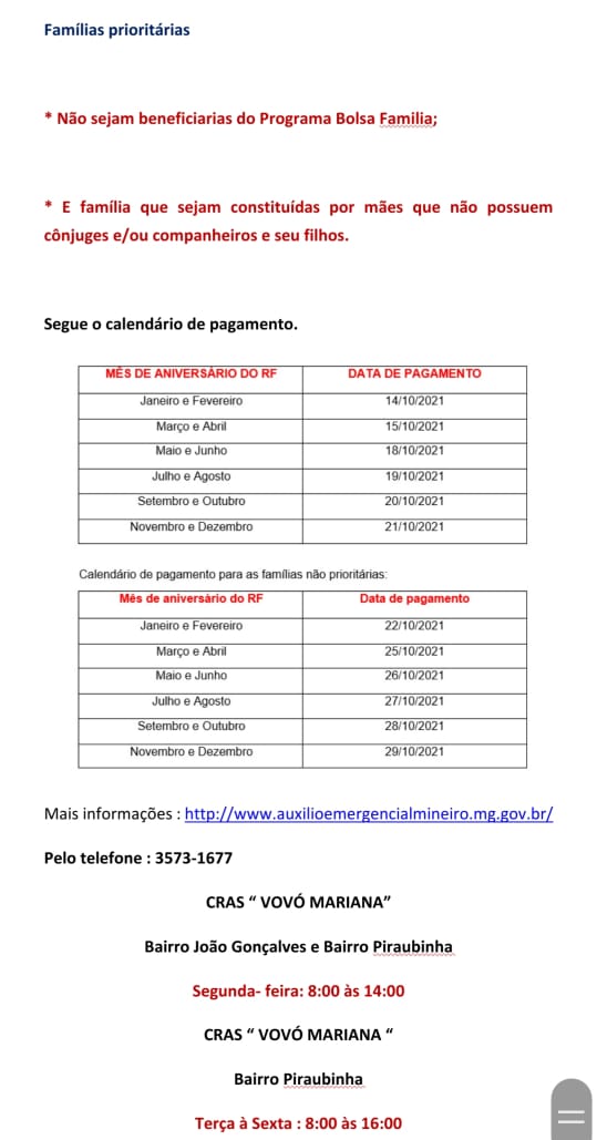 Mais informações : http://www.auxilioemergencialmineiro.mg.gov.br/