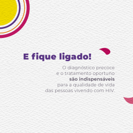Atualmente é possível conviver com o vírus HIV e viver com qualidade de vida. Basta seguir o tratamento indicado e as recomendações da equipe de saúde. Saber precocemente da infecção pelo HIV é fundamental para aumentar a qualidade e sobrevida da pessoa.