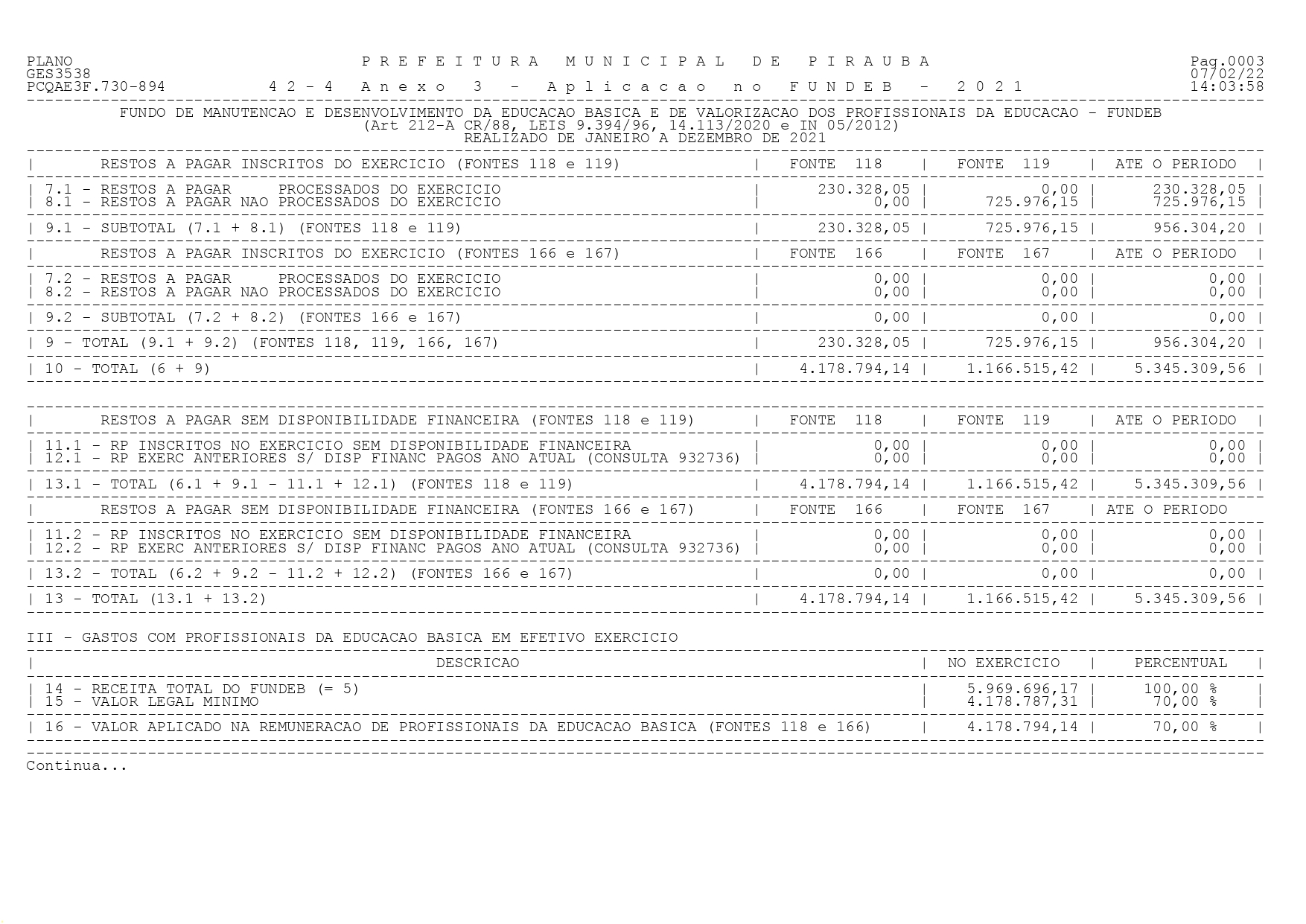 | RELATÓRIO FUNDEB - 2021 |