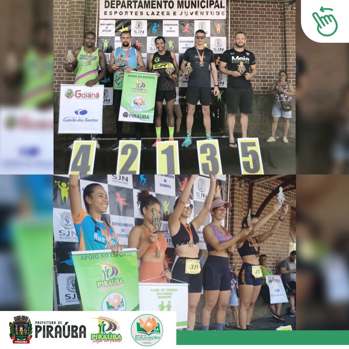 As duas categorias da corrida tiveram piraubanos no pódio. O 1⁰ lugar ficou com o campeão Júlio, o atleta Gilmar conquistou o 2⁰ lugar e já a atleta Daiane conquistou o 4⁰ lugar, corrida válida pelo Ranking G10.