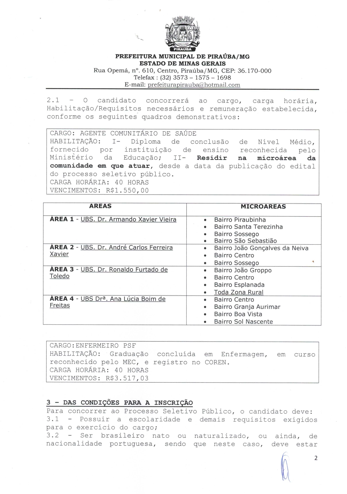 Processo Seletivo Público e composição para quadro de reserva, para eventual contratação temporária de excepcional interesse público para atuação de profissionais junto à Secretaria Municipal de Saúde, para admissão em caráter temporário e por contrato de tempo determinado, de acordo com os cargos a seguir relacionados, o qual se regerá pelas instruções no Edital.