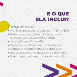 O HIV/Aids é uma doença séria e afeta o mundo todo. Por meio do Sistema Único de Saúde (SUS), o Brasil é referência internacional no tratamento de HIV/Aids, disponibilizando a população, tratamento (antirretroviral), bem como o acesso a testagem, ao preservativo (camisinha) e gel lubrificante.